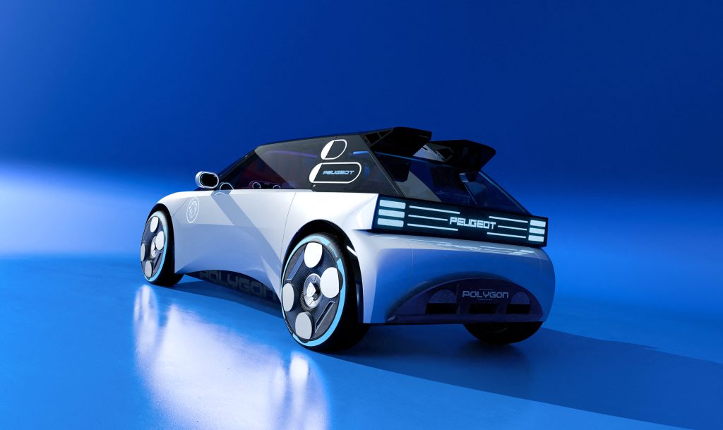 Das verspielte Design des Polygon Concept gestattet gleichzeitig einen Ausblick auf die neue Frontpartie der kommenden Peugeot-Modelle. Das bisher übliche Drei-Krallen-Lichtdesign wurde von den Kreativen in Paris in einem horizontalen Layout neu interpretiert. Darüber hinaus soll die Studie die künftige Ausrichtung des Fahrzeugdesigns zeigen. Technische Daten über den Antrieb sowie über Reichweite wurden bei der Vorstellung nicht verraten.
