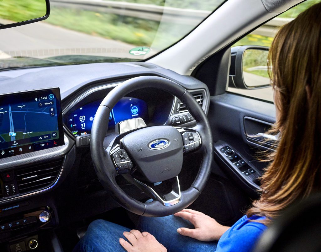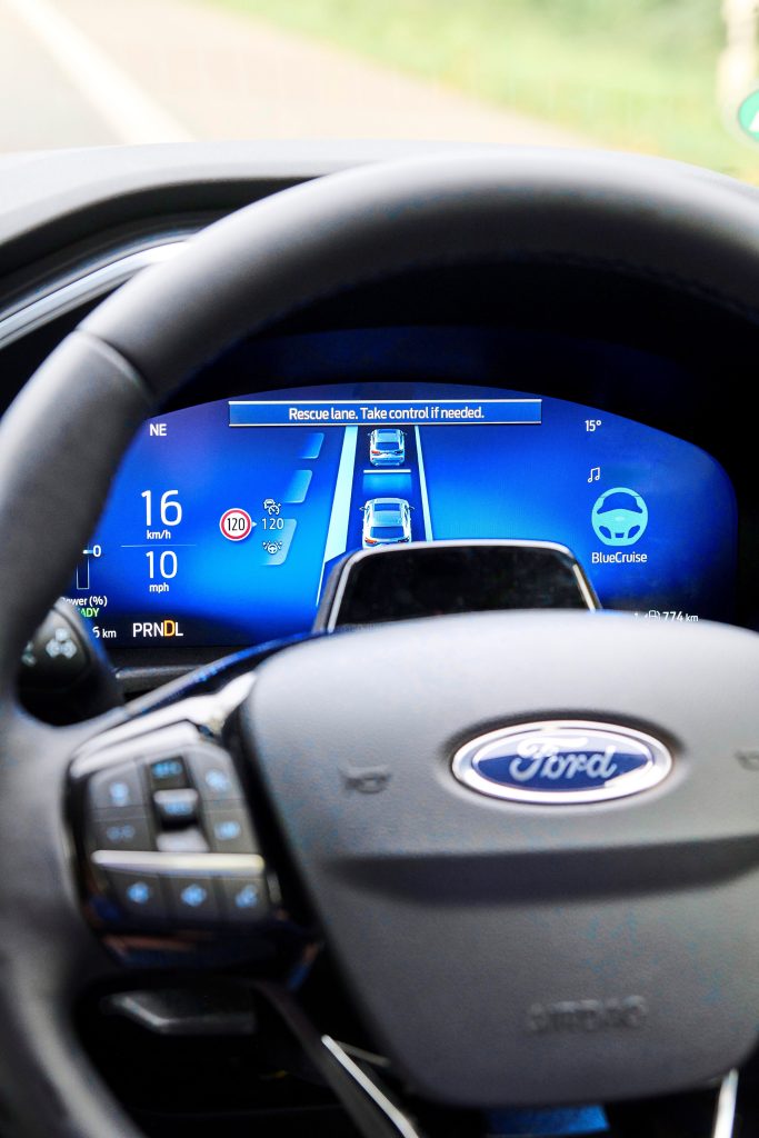 Diese innovative Technologie hebt Fahrerassistenzsysteme auf die nächste Stufe. Über Sensoren, wie die nach vorne gerichtete Frontkamera und Radarsensoren, erfasst Ford BlueCruise Fahrbahnmarkierungen, Geschwindigkeitsbegrenzungen und sich verändernde Verkehrsbedingungen. Auf dieser Basis regelt das Assistenzsystem Lenkung, Beschleunigung, Bremsen und die Positionierung des Wagens in der eigenen Fahrspur. Zeitgleich erkennt die hinter dem Lenkrad positionierte Infrarotkamera, ob der Fahrer der aktuellen Verkehrssituation auch weiterhin seine volle Aufmerksamkeit widmet.
